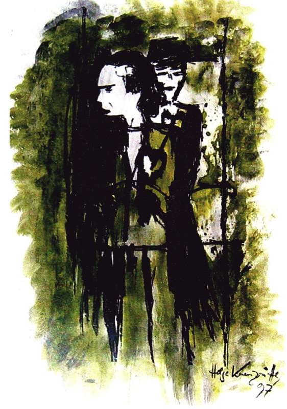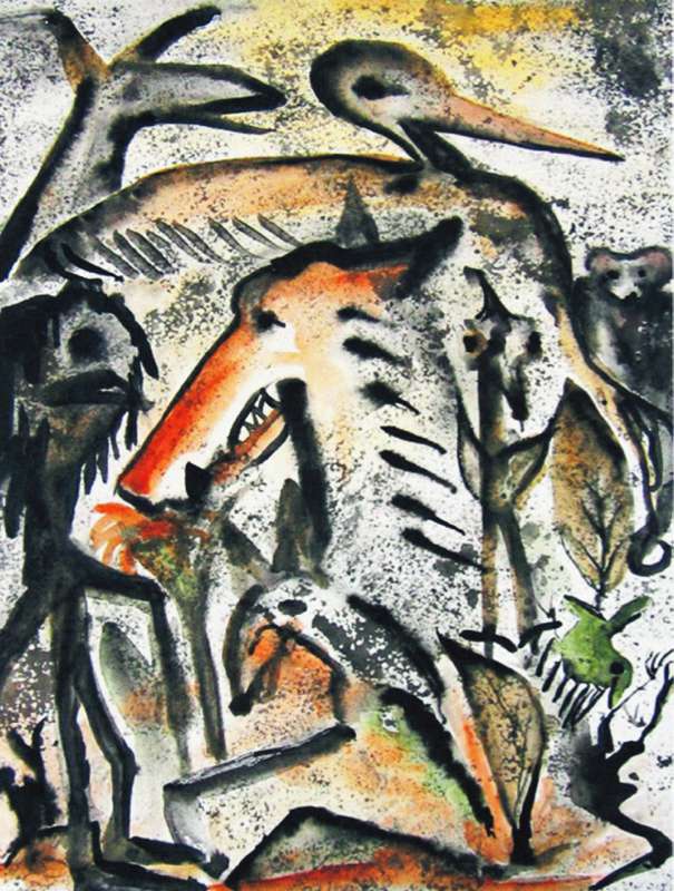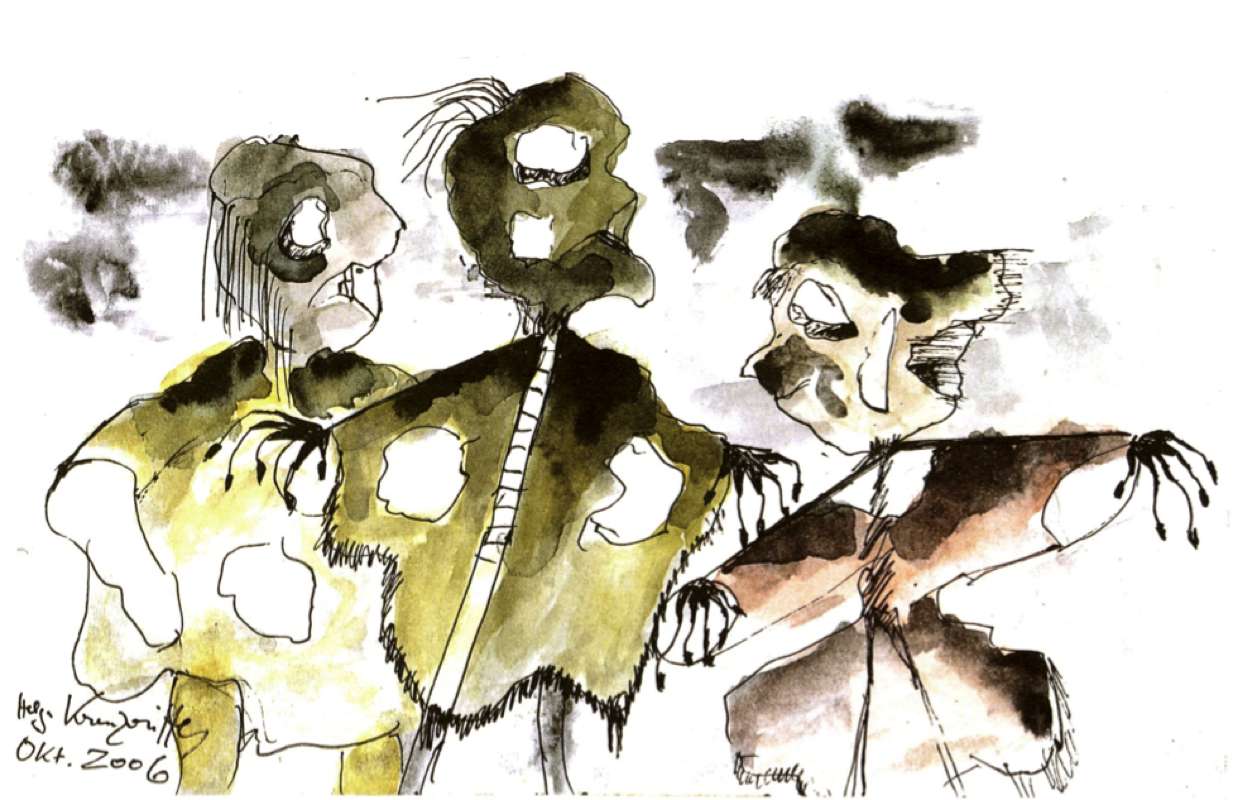 Tuschezeichnung coloriert